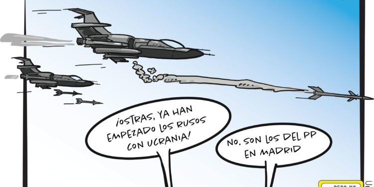 La guerra interna del PP, que se ha desencadenado en los últimos días por el fuego cruzado entre la presidenta de la Comunidad de Madrid,  Isabel Díaz Ayuso, el presidente del PP, Pablo Casado, y otros dirigentes populares inspira la viñeta de esta semana de Toni Untaltoni en su sección Millor Riure.