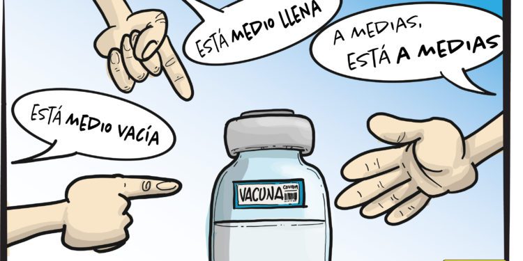 Una solución al dilema del vaso medio lleno… o medio vacío en versión vacuna. Esta es la propuesta del humorista gráfico Untaltoni de esta semana, en la que parece que el ritmo de vacunaciones ha avanzado mucho, pero tampoco está como para tirar cohetes a la vista de las dificultades que está habiendo incluso para localizar a la población mayor de 50 años de Baleares que todavía nos se ha vacunado.