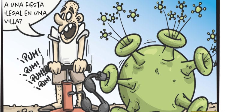 El humorista gráfico Untaltoni dedica su viñeta de la sección Millor Riure de hoy a uno de los temas claves de esta temporada alta: las fiestas ilegales en villas. Cada noche con cientos y cientos las personas que acuden a estas fiestas ilegales, donde no existen las más mínimas medidas de prevención anti Covid. Fiestas y contactos que no hacen sino darle oxígeno a la pandemia en Ibiza, mientras se lo quitan al turismo, su principal pilar económico. Cada vez son más los países que colocan a Baleares en lista ámbar y desaconsejan los viajes.