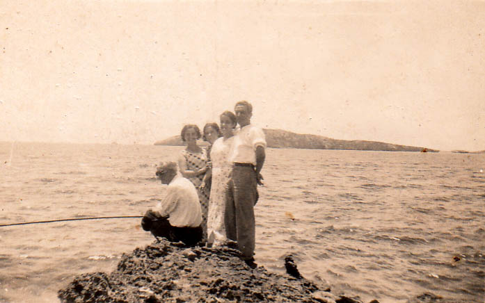 Mis padres de solteros, con familiares y amigos, pasando el día junto al mar de los Molinos. Principio de la década de 1930. Foto familiar.