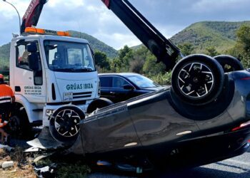 Un espectacular accidente tuvo lugar esta mañana en la carretera de Platges de Comte, en el municipio ibicenco de Sant ...