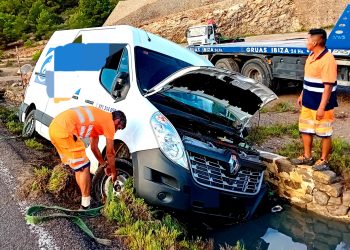Un camión colisiona contra una furgoneta en una carretera de Ibiza y le arranca la puerta del conductor