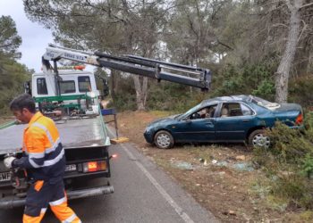 Un turismo ha volcado esta mañana, sobre las ocho y media, en la carretera de Sant Carles después de que, ...