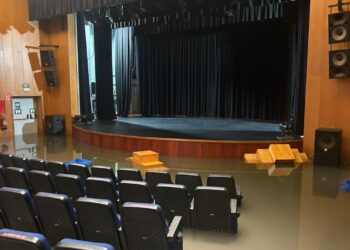 Agua hasta las butacas: la lluvia anega el el auditorio de Cas Serres de Ibiza que suspende toda la programación 2025