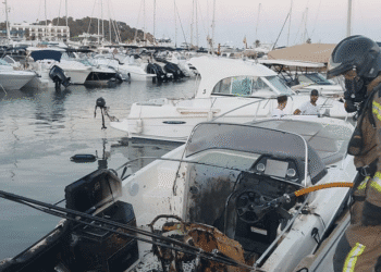A última hora de la tarde de ayer se declaró un incendio en una lancha amarrada en el puerto deportivo ...