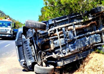 Un todoterreno de alquiler ha sufrido esta tarde un accidente en la carretera de Cala Vedella, en Sant Josep, tras ...