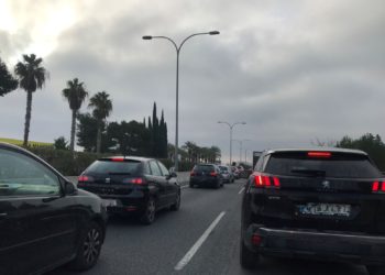 Grandes retenciones en la carretera de Sant Antoni por labores de mantenimiento de medianas en hora punta