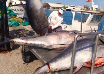 Gerardo y Vicent Pagès, patrón del llaüt 'Es Vedrà', la Cofradía de Pescadores de Ibiza, capturaron el pasado viernes tres ...