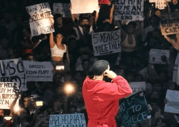 Una foto del concierto del rapero canadiense Drake ayer en Australia está dando la vuelta al mundo por las pancartas ...