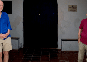 El arquitecto ibicenco Elías Torres Tur y el fotógrafo Michael Moran presentan este viernes, en la iglesia de Santa Eulària, ...