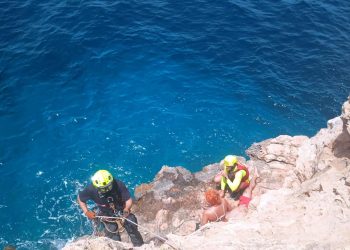Un hombre ha tenido que ser rescatado este mediodía por los bomberos de Formentera tras caer sobre las rocas desde ...