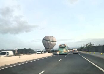 Ilusión óptica: un globo aerostático despega sobre la carretera de Santa Eulària
