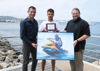 El Ayuntamiento de Sant Antoni ha realizado esta mañana un reconocimiento al piloto portmanyí de motos de agua Álex Prats, ...