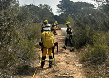 Bomberos del Parque Insular de Ibiza han trabajado esta mañana en la extinción de un incendio forestal que se ha ...