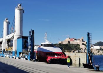 El barco de la compañía FRS que el pasado verano cubría por primera vez la ruta marítima entre Formentera e ...