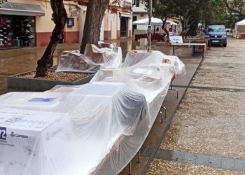 Los libreros aguardan en Vara de Rey a que pare de llover para poder montar las paradas y mostrar su ...