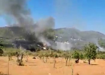 El incendio declarado sobre las seis de la tarde de este jueves en la venda de es Codolar, en Sant ...