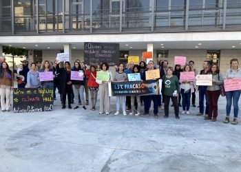 Activistas contra el cambio climático se concentraron ayer por la tarde frente a la sede de los juzgados de Ibiza ...