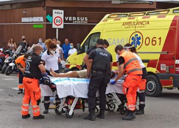El personal de ambulancias atiende al herido ante la presencia de testigos. Foto Vicent Ribas. El accidente se ha producido ...