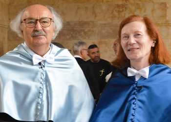 La física irlandesa Margaret Murnane y el poeta leonés Antonio Colinas, afincado en Ibiza durante más de 20 años, se ...