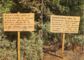 Una imagen de dos carteles junto a una zona de costa de Sant Josep se ha hecho viral este fin ...