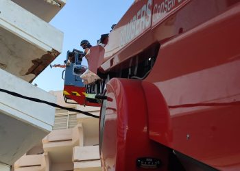 Efectivos del Parque Insular de Bomberos de Ibiza han tenido que actuar esta mañana en la fachada de un edificio ...