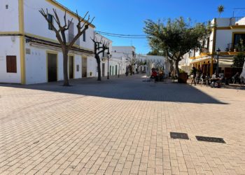 Los trabajos para soterrar los cables de la electricidad aéreos que afean la plaza de la Iglesia de Santa Gertrudis ...