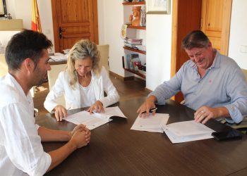 El alcalde de Sant Antoni de Portmany, Marcos Serra; la concejala de Gobernación y Medio Ambiente, Neus Mateu, y el ...