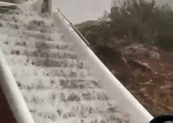Las fuertes lluvias han provocado esta mañana imágenes como esta: una escalera del cementerio nuevo de Ibiza convertida en una ...