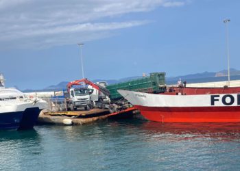 La línea Ibiza-Formentera ha estado casi 4 horas colapsada por un camión atrapado al desembarcar en La Savina