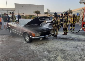El motor de un Mercedes clásico tipo Cabriolet descapotable, de gran valor, ardió ayer por la tarde en la carretera ...