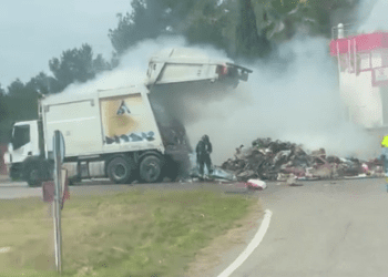 Parte de la carga de desechos de un camión de la basura ha ardido hoy en la carretera de Sant ...