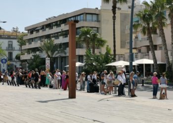 Ni taxis ni sombra y largas colas en una parada de Ibiza