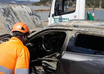 Los ocupantes de un vehículo de alquiler que ha caído y volcado en un estanque de ses Salines de Ibiza ...