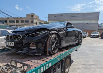 Dos vehículos de alta gama han colisionado esta tarde en la rotonda de ses Salines, en Ibiza, y sus ocupantes ...