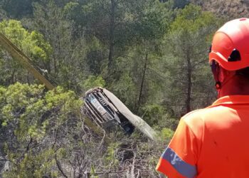 Un vehículo de la compañía Uber se ha precipitado esta pasada noche 28 metros por un barranco de sa Caleta, ...